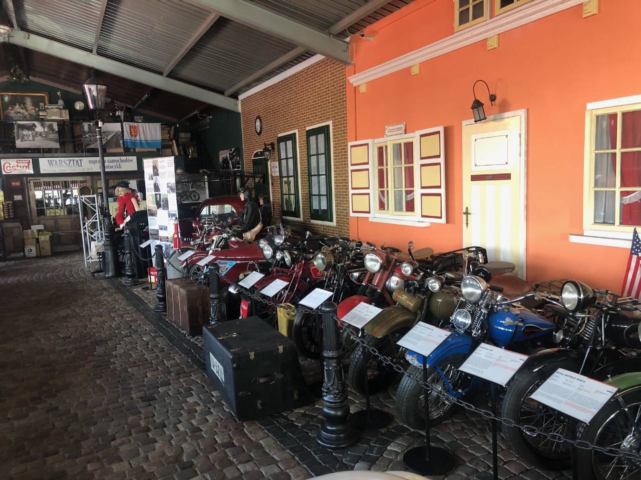 Oprócz samochodów i motocykli, Gdyńskie Muzeum Motoryzacji posiada też bogate archiwum dokumentów – schematy silników, zdjęcia z najsłynniejszych rajdów, stare mapy samochodowe – które można oglądać na antresoli, w gustownie urządzonej kawiarence z epoki. Warto też zwrócić uwagę na dekorację hali ekspozycyjnej. Scenerię stylizowanej na lata 20. brukowanej uliczki dopełniają fasady domów i kamienic, których drzwi, okna, szyldy i zdobienia są oryginalne – pochodzą z budynków, które w rzeczywistości stały w międzywojennej Gdyni i Gdańsku. Z należytą pieczołowitością odwzorowano też kolory elewacji.